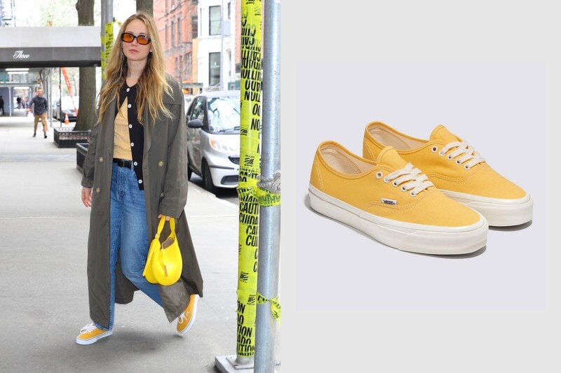 Vans MTE Authentic Reissue 44 男女款黄色滑板鞋 NT.2180 好莱坞女星珍妮佛劳伦斯在私服中也是Vans鞋款的爱用者之一,除了经典的黑色系之外,珍妮佛劳伦斯与吉吉哈蒂德同样青睐亮眼的黄色系,他选择穿上Authentic系列的黄色鞋款,由此也可以看出其实黄色鞋款与牛仔裤的搭配上非常合拍,是很适合在夏天穿搭的组和。